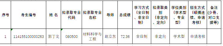 中国地质大学(北京)材料科学与工程学院2025年博士研究生拟录取(第二批)名单如下: