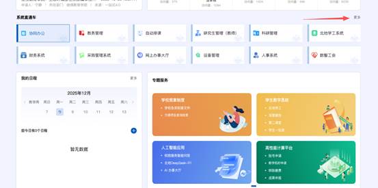 1、进入北地融合门户(信息门户),在[url=]系统直通车栏目[/url]点“更多”