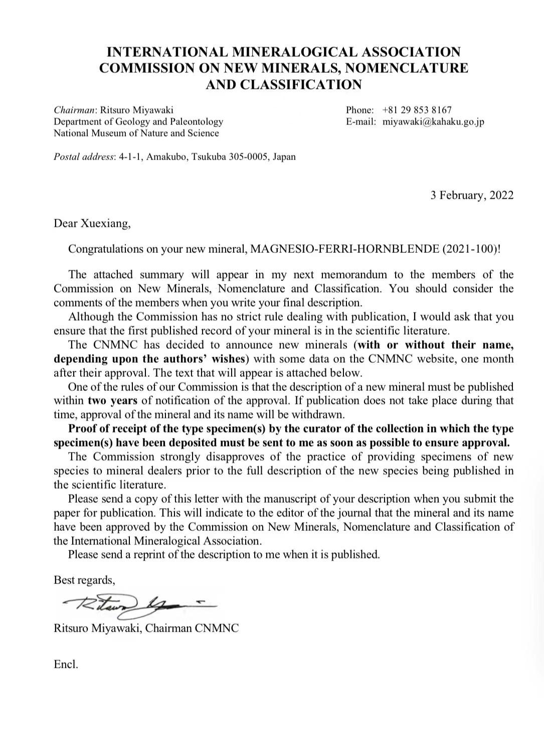 2月3日,经国际矿物学协会新矿物命名与分类委员会(IMA-CNMNC)审查与投票,中国地质大学(北京)章永梅副教授、顾雪祥教授与核工业地质研究院范光研究员和李婷研究员等申报的新矿物正式获得批准,编号为IMA2021-100。该新矿物被命名为“Magnesio-ferri-hornblende”,中文名为“镁高铁角闪石”,缩写名为Mfhbl。