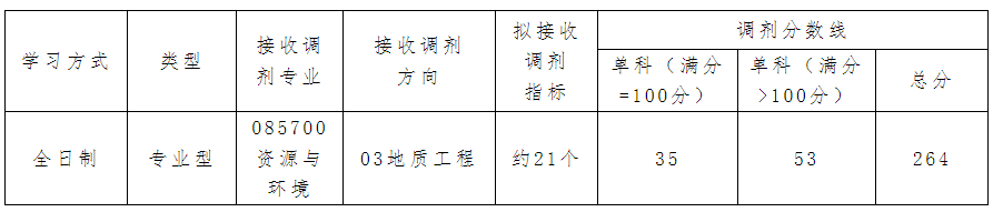 二、调剂的条件和要求 1、符合国家2026年A类地区研究生复试基本要求、符合教育部及我院相关调剂政策。 2、初试成绩符合我院进入复试的分数要求。 3、资源与环境调剂要求: (1)第一志愿报考专业为07理学:070704海洋地质学、070801固体地球物理学、0709地质学、070301无机化学、070302分析化学、0703Z1材料化学。08工学:0818地质资源与地质工程、0857资源与环境(一志愿方向为01环境工程、03地质工程或00不区分方向但初试专业课为地质类、环境类)、0830环境科学与工程。 (2)初试科目须包含数学。 (3)本科专业为理工科。 三、调剂申请程序 1.报名方式 所有调剂考生均须通过教育部“全国硕士生招生复试调剂服务系统” (http://yz.chsi.com.cn/yztj/)进行。 2.报名时间 调剂正式开通时间为:4月8日0:00-4月8日12:00 四、复试 符合我院调剂要求的考生请在规定时间内登录研招网调剂系统填报调剂志愿,经初审名单确定后,将通过调剂系统向考生发送复试通知,考生在系统中确认同意复试后按要求参加我院复试方可。复试名单在研究生院招生网站院系招生栏公示。 具体复试时间和要求另行通知。 五、调剂录取工作办法 参见《科学研究院2026年硕士研究生复试录取工作方案》(见附件)。 并请及时关注中国地质大学(北京)研究生院招生网站和科学研究院网站的相关信息。 中国地质大学(北京) 科学研究院 2026年3月30日 科学研究院2026年硕士研究生复试录取工作方案.pdf
